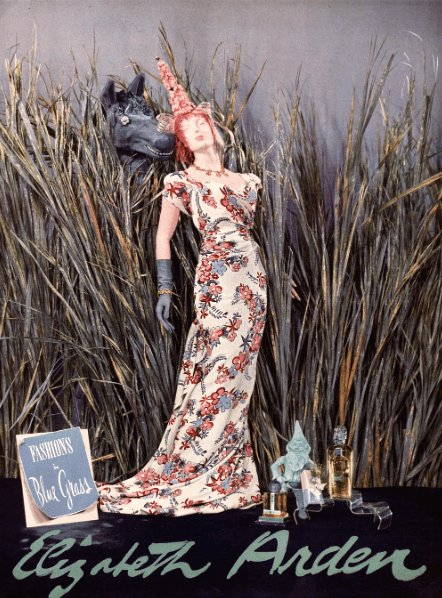 I posted a 1960s advertisement for Elizabeth Arden Blue Grass fragrance (1934) a few weeks ago, when I was looking for a visual that evoked cool, grassy scents for summer. In that search, I found the ad above, which ran in several major women’s magazines in 1941.
