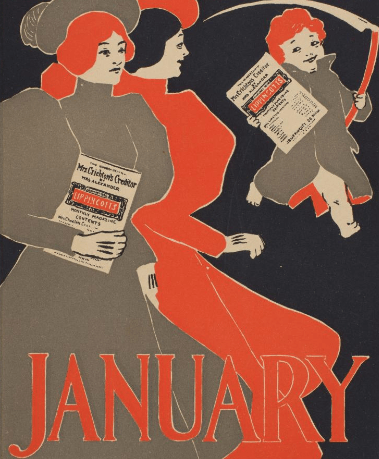 Image: Lippincott’s January (cropped) by J. J. Gould. American, 1896. Chromolithograph.