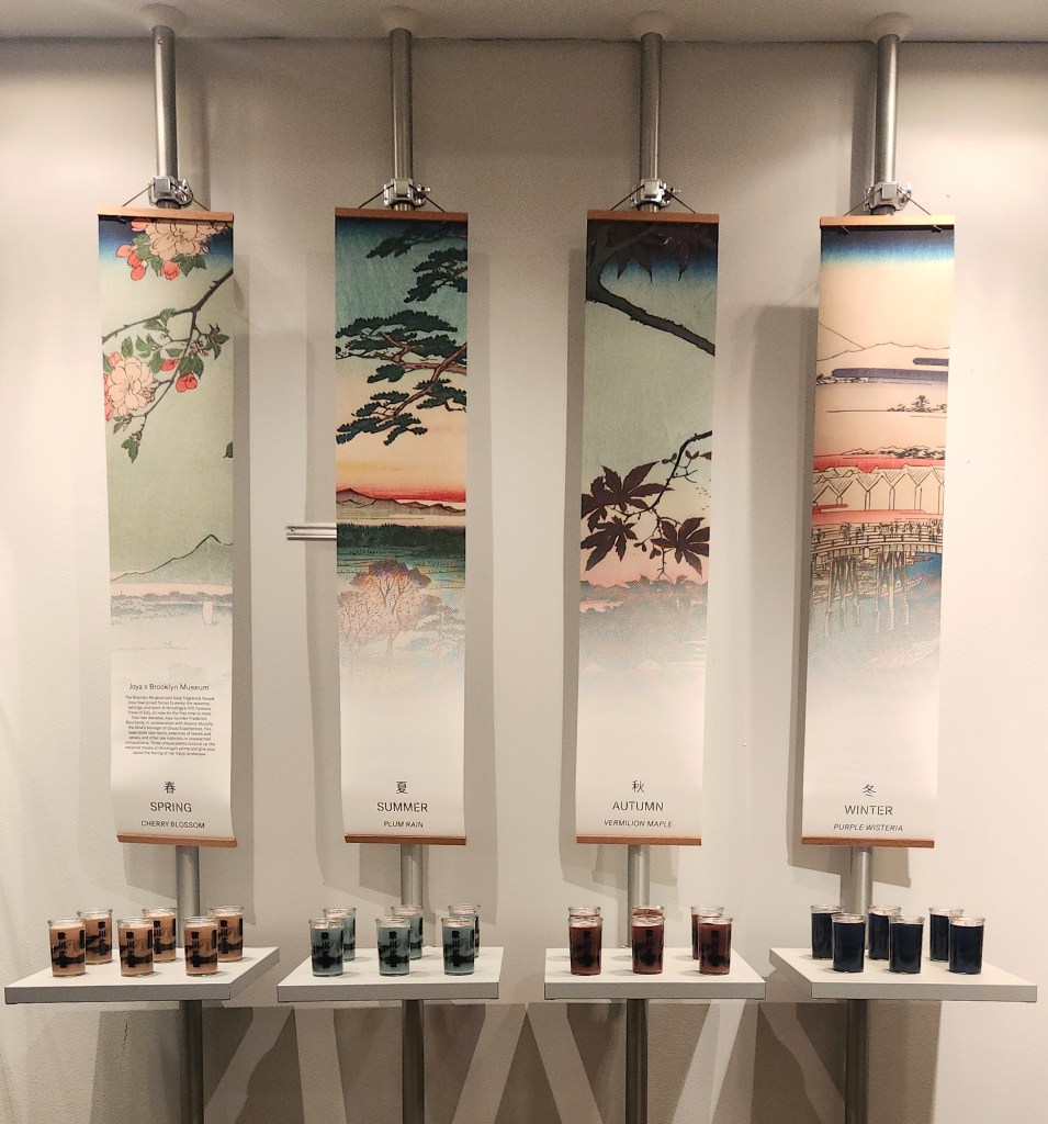 Well, here’s something new: the Brooklyn Museum’s retail team recently worked with Joya Studio on a collection of four limited edition candles. They were created to commemorate the BkM’s current exhibition of Utagawa Hiroshige’s 100 Views of Edo, and I was able to participate in the process.