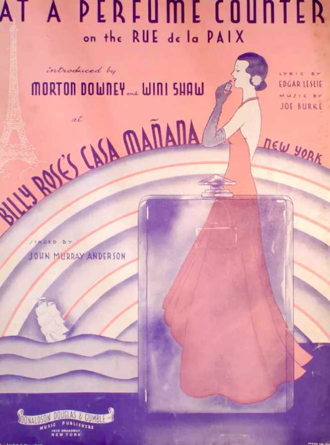 Were there really perfume shops on the Rue de la Paix? Yes! Dana, Rigaud, and Guerlain, to name just a few, were represented by boutiques on this chic street. Many fashion houses, taking inspiration from Chanel, were also selling their own fragrances by the 1930s. We’ll never know exactly which perfume counter inspired the song…