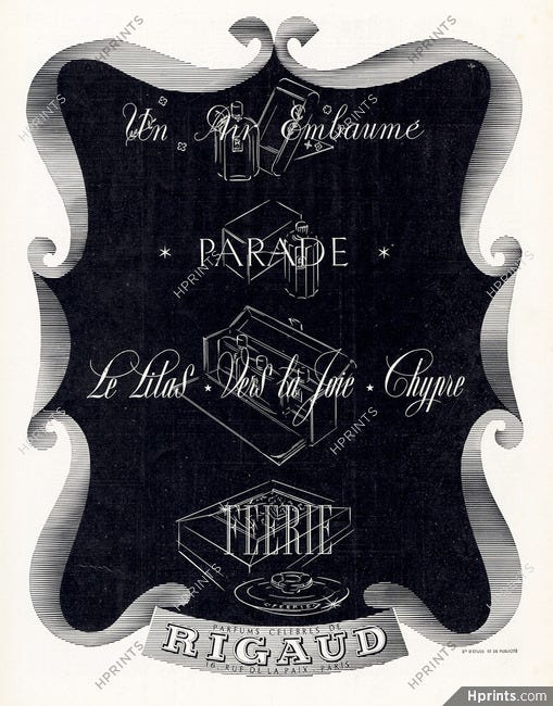 I came across this image during a completely unrelated search, and since it was totally unfamiliar to me (and it doesn’t seem to have been discussed by any internet perfume-lovers until now!), I had to do a little unscheduled research.